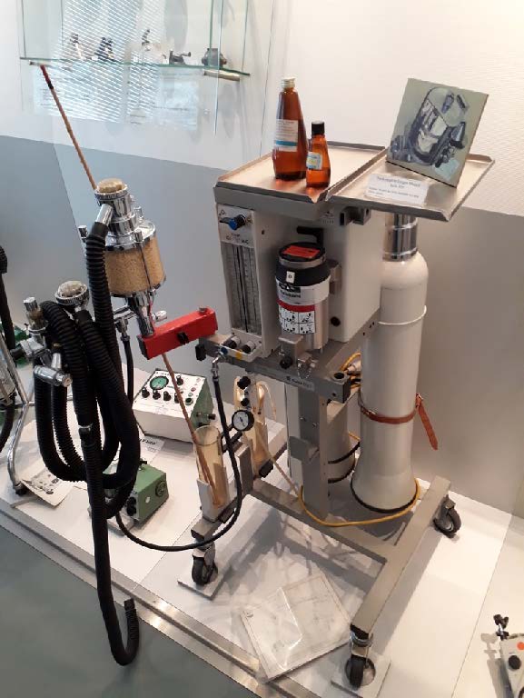 etwa 1970 Einfaches Beatmungsgerät für den Narkosebereich.